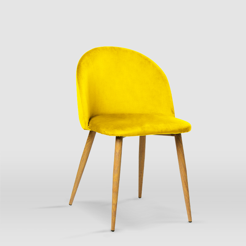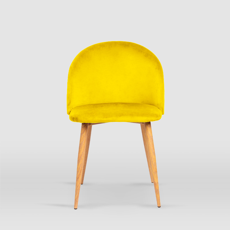 La silla de comedor Mercedes es de estilo vintage y junto al modelo Iria, es el más solicitado por nuestros clientes. Dispone de un tapizado en terciopelo en 6 gamas tonales y patas metálicas lacadas con efecto madera de haya que le aportan una apariencia única y especial. Además, nuestro modelo Mercedes, destaca también por sus formas curvas y sencillas al más puro estilo Velvet. Elige el color que más se adapte a tus gustos y convierte tu hogar en un espacio exclusivo aportando carácter y personalidad.