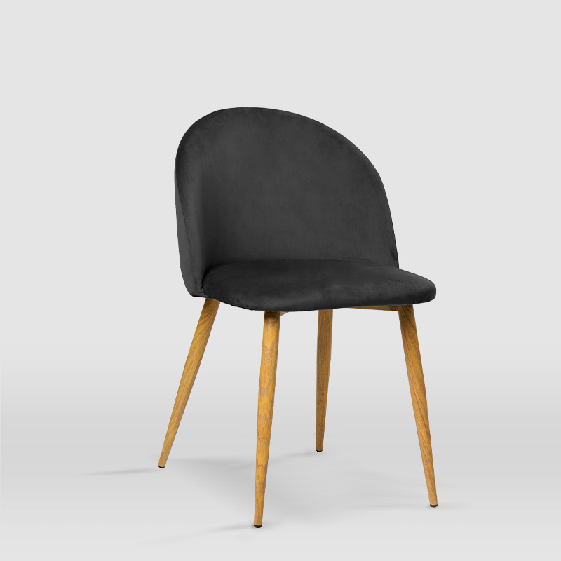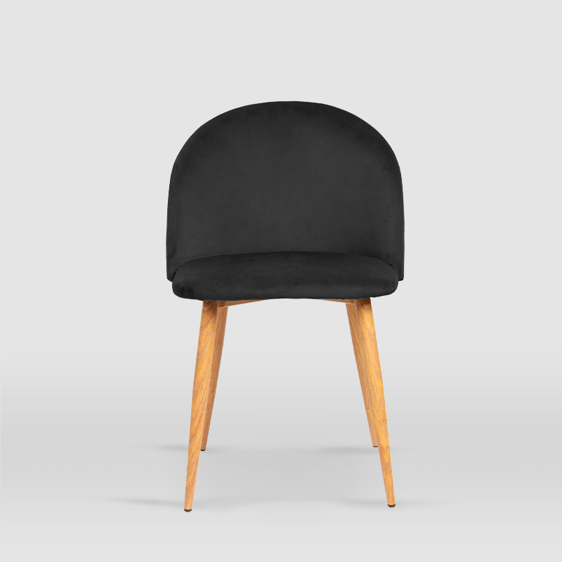 La silla de comedor Mercedes es de estilo vintage y junto al modelo Iria, es el más solicitado por nuestros clientes. Dispone de un tapizado en terciopelo en 6 gamas tonales y patas metálicas lacadas con efecto madera de haya que le aportan una apariencia única y especial. Además, nuestro modelo Mercedes, destaca también por sus formas curvas y sencillas al más puro estilo Velvet. Elige el color que más se adapte a tus gustos y convierte tu hogar en un espacio exclusivo aportando carácter y personalidad.