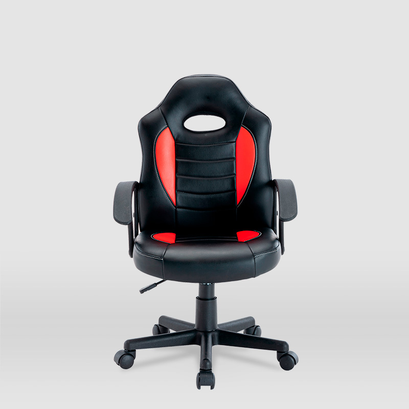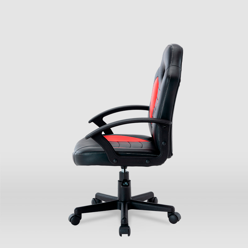 La silla Gaming Zoe con respaldo abatible es nuestra última incorporación. Su tamaño es perfecto para crear tu set gaming y te permitirá disfrutar de largas horas frente a la pantalla. Su acabado en cuero artificial junto a sus reposabrazos fijos te brindará de la experiencia perfecta para seguir disfrutando de extensas partidas.