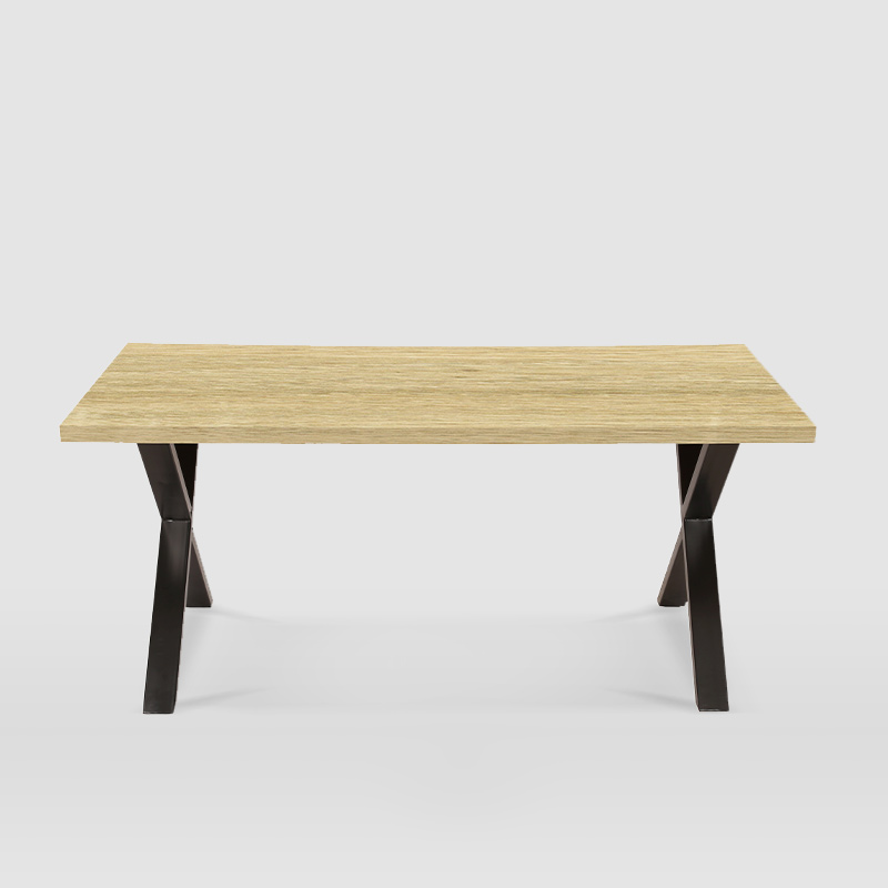 Nuestro modelo de mesa Cárite es la pieza fundamental para vestir tu salón o comedor. Su estilo industrial y sus materiales resistentes le aportan calidad y diseño contemporáneo a partes iguales. Fabricada con tablero MDF de 40 mm de espesor con acabado vinílico en madera de haya junto con sus patas metálicas lacadas en negro y con un diseño en X, la convierten en la mesa idónea para combinar con diferentes estilos decorativos a la vez que genera personalidad y carácter al espacio que deseemos.